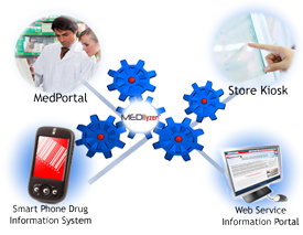 A mobile user first snaps a picture of the barcode(s) of the medication and the software retrieves the necessary information from the MediLyzer™ central server.